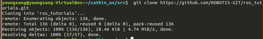 해당 git사이트에는 가으이에서 쓰인 모든 튜토리얼 패키지가 담겨있고 내가 기존에 만들었던 것과 이름이 중복 되는 것들도 있기에 내가 만든 것들(catkin_ws/src)은 music폴더에 옮겨두었다.