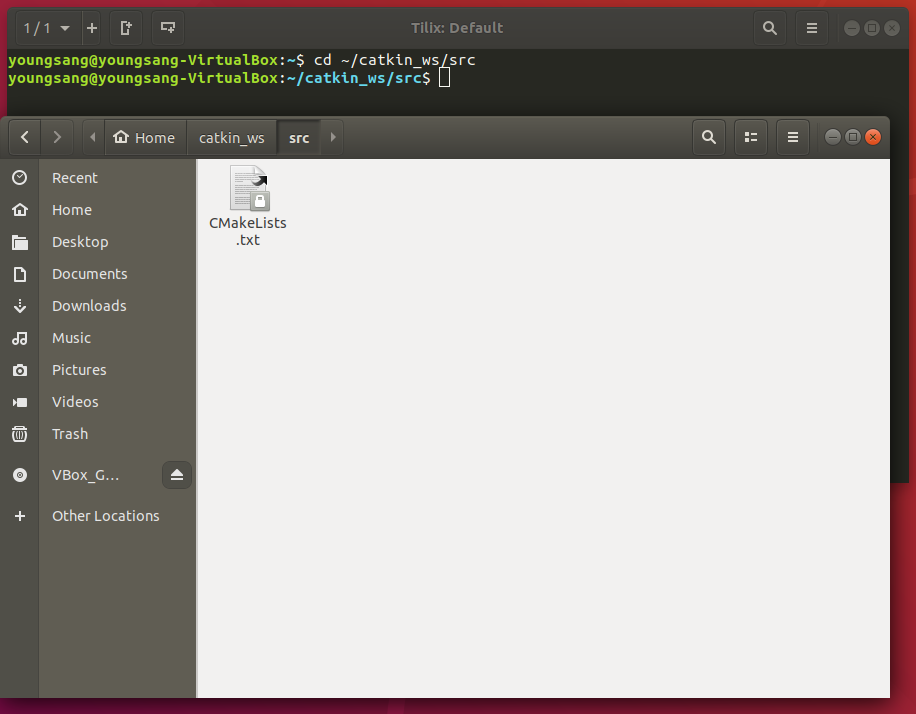 즉, 홈 안에 있는 catkin_ws안에 있는 src 폴더로 이동해라.라는 명령이다.