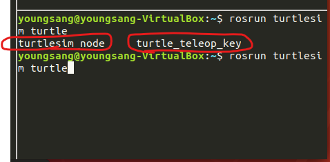 이제 다른 노드를 실행시켜서 거북이를 띄워보자.