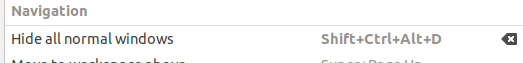 또한 tilix에서 새로운 터미널을 실행시킬 때 사용하는 명령어 중 Ctrl + Alt + D (아래면에 새로운 터미널 생성)라는 것이 있는데 이 명령이 기존 우분투에서 '모든 창 숨기기' 단축키와 같기 때문에 이 단축키도 변경해 주었다.