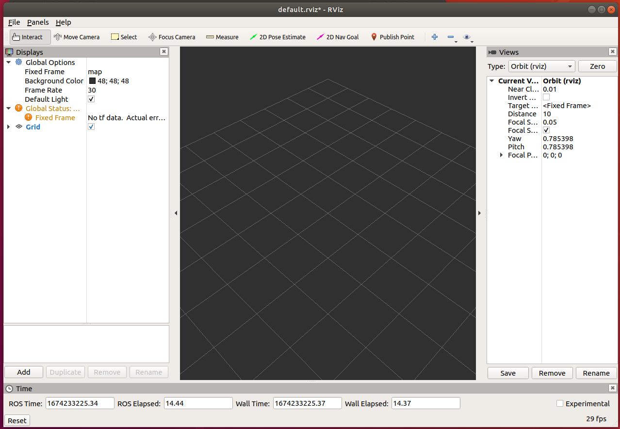 1. 3D 뷰인데 3차원 공간상에 내가 만약 로봇을 모델링한 것이 있다면 로봇이 보이게 될 것이다.