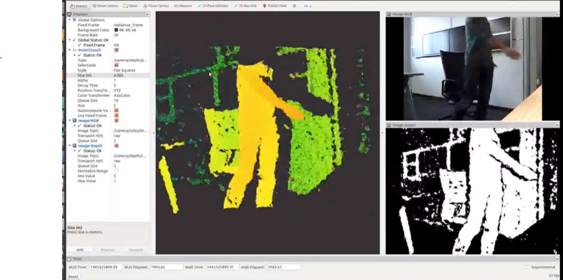 왼쪽 사진은 Depth영상이고, 오른쪽 아래 사진은 IR영상이다.(적외선 카메라(밤에도 보임))